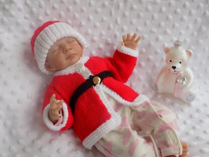 I'm delighted to introduce this knitting pattern for a tiny premature baby's first Christmas Santa knit set, just 10 inch chest. I created it because I wanted to make tiny baby clothes that were a more natural fit for premature babies. Since the coat is for such a tiny little premature baby, the sleeves have been made wide to enable the baby to be dressed as easily as possible. The back and fronts are knitted in one piece to the armholes to minimise uncomfortable seams. The design is knitted in stocking stitch with garter stitch borders and belt. It closes neatly with 3 small buttons to the front. The hat is a simple beanie which features a ribbed stitch border and stocking stitch. It is knitted flat on 2 needles. Included in the pattern is an NICU Santa toy with long thin legs - ideal for a preemie to grip for comfort - working in a similar way to a preemie octopus. The pattern includes instructions for knitting for boys and girls.