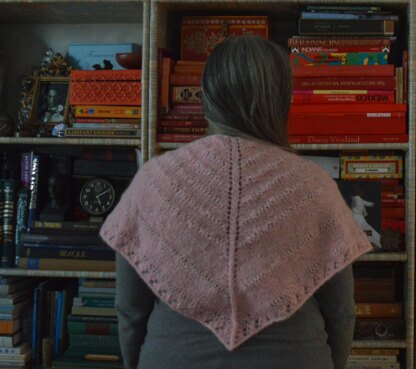 This triangular stockinette stitch shawlette uses dropped stitches to mimic the look of stripes. The simple stitch pattern lets the mohair yarn take center stage.