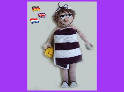 ENGLISH * Simple pattern if you know how to crochet Magic Ring, chain , slip stitch, single crochet, half double crochet and double crochet. * This manual is available in English, Dutch and German. * The Doll is 40 cm (hook size 2). * The manual is very detailed and contains many photos.* If you have any problems and / or questions about my instructions please contact me by email. Attention! This is a crochet pattern, not a finished product