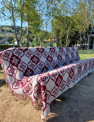 Persian Rhapsody Afgan, is created by using the mosaic crochet overlay technique.