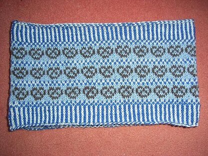 It has pretzels all around and a nice little blue and white Bavarian peerie pattern. The striped ribbing fits perfectly around it. As there are at most two colors in one round this project is also suitable for stranded knitting beginners.