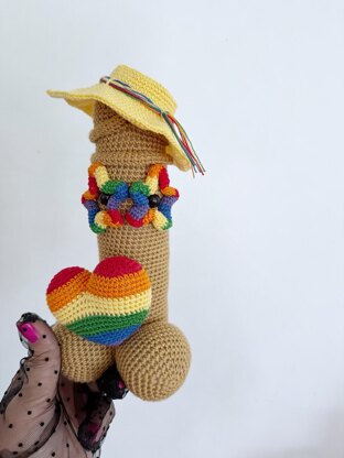 "Pride penis" crochet pattern PDF in English ( American terminology ) and Spanish. The finished toy using the materials stated in this pattern are 8 inches ( 20 cm ).