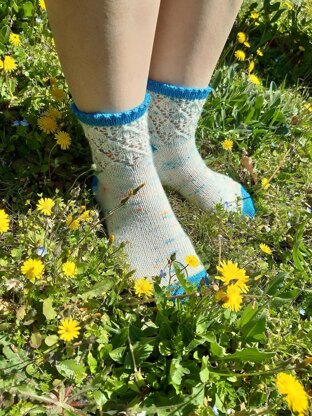 I imagined spring, light and airy socks, with a pretty lace on the ankle and a picot edge.