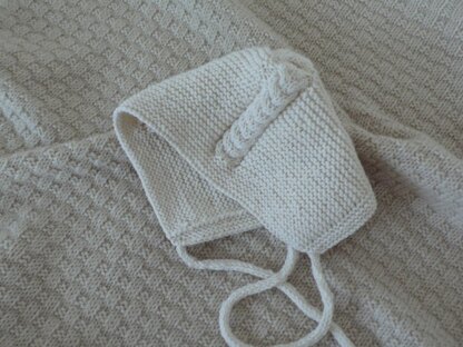 Inspired by the beautiful bonnet which Princess Charlotte wore to meet the world this week, this versatile design will keep any little one snug in their early visiting days. Knit in one piece in snuggly garter stitch, this bonnet has a crown of cables encircling the head and an interesting seamless construction. Knit in Rowan's Wool Cotton 4ply which, with its non-shed and easy care qualities, is perfect for babies. Photographed on my basket-weave blanket design, a veritable trousseau is being established!
