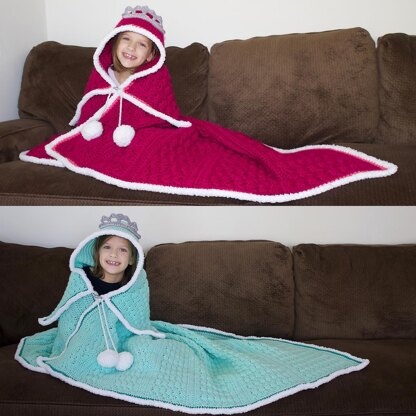 Our beautiful and elegant princess hooded blanket pattern is finally here. Stay warm and cozy while looking like a princess with our princess hooded blanket. Play princess dress up and you can use it as part of your Halloween princess costume! Spoil your little princess with this adorable princess hooded blanket. Instructions include options to make this blanket out of super bulky yarn or worsted weight yarn. It is very detailed and there are pictures to help along the way. With these detailed instructions, even those with little crochet experience can find success creating their own masterpiece!
