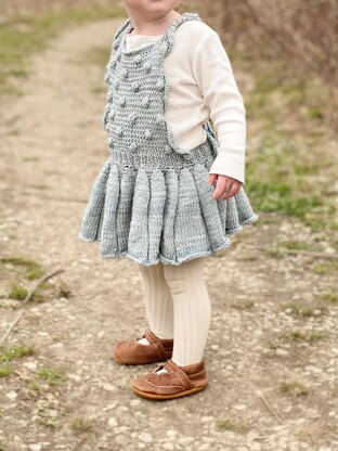 Knit up this gorgeous pinafore for a toddler you love! Easy to follow, fun to knit, this adorable dress will bring a smile to your face! Comfortable and fun to wear, it's knit in DK merino wool and is therefore perfect for any season, with or without layers.