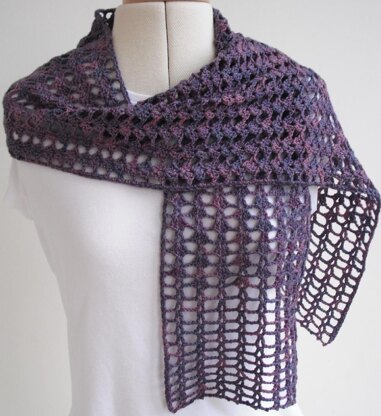 I designed this scarf to provide warmth around the neck but with a lacy appearance. So it starts with dense fabric at the neck, progressively moving to more open and lacy at the ends. Optional beaded edges add weight, or try a shell edging or picot edging or add a fringe - the choice is yours! Takes only one 100g skein of 4 ply/fingering weight yarn. Finished size approx 20cm wide by 150cm long. My sample used just under one skein, probably about 395m. The pattern is written in English and US terminology, and is also charted.