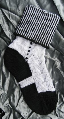 This is a cuff down, afterthought-heeled, seam-footed, pseudo be-buttoned steampunk sock inspired by 1920’s foot fashion, and the promise of bootleg liquor!
