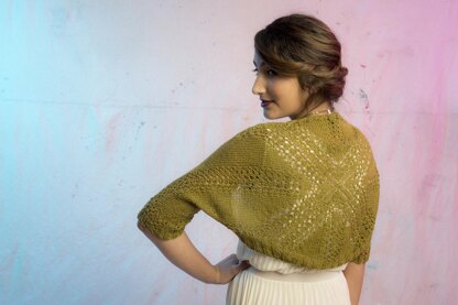 The Prospect Shrug is worked from the center out. First a square of lace is worked in the round for the back. Each sleeve is then created by working a flat lace panel out for a few inches and then joining those stitches into the round to create the sleeve shaping. Finally, stitches are picked up all the way around the inside of the shrug to pull it all together with a ribbed short row collar. We recommend using sharp tip lace needles to work this project.