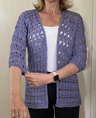 The cardigan is made sideways, which will give you the possibility to make it basicly any size you'd like.