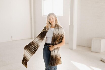 This scarf is a long, open-ended scarf with fringe added to both ends.