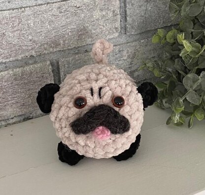 Crochet Pug Dog Pattern: A cute Pug dog plushie crochet pattern, offering an easy amigurumi Pug dog crochet experience for beginners. Available as a PDF pattern only. Skill Level: Beginner - Pattern is written in English, using Standard US crochet terms. 🐶 Barley the Pug Crochet Pattern Notes: - Finished Size: Approx. 6"/15.24cm” length x 4"/10.6cm” wide x 3.5"/8.89cm” high. - Hook Sizes Required: 6mm (J) and 3.75 mm (F) 🐶 Suggested Yarn + Weight: - Black Super Bulky Weight - Category 6 (1 Skein) - Beige Super Bulky Weight - Category 6 (1 Skein) - Black Worsted Weight (Approx: 36"L) - Pink Worsted Weight (Approx: 24"L)