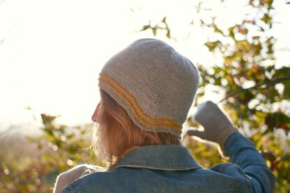 Short earflaps, without short rows. Those yellow stripes are “two rounds in contrast color” stripes. Simple, but effective.