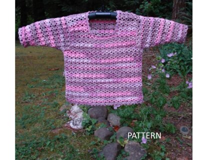 This sweet baby sweater is crocheted in a Shell and V-St pattern with a small edging around the neck, cuffs and bottom. Minimal shaping makes this a quick and easy crochet project. The left shoulder seam is fastened with buttons for ease and comfort.