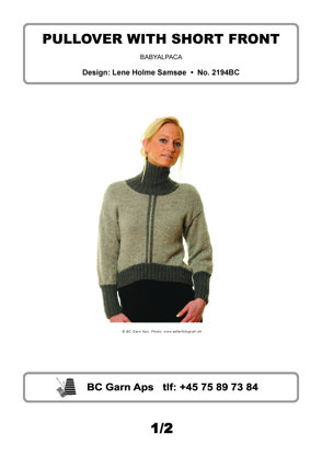 Pullover with Short Front in BC Garn Baby Alpaca - 2194BC - Downloadable PDF