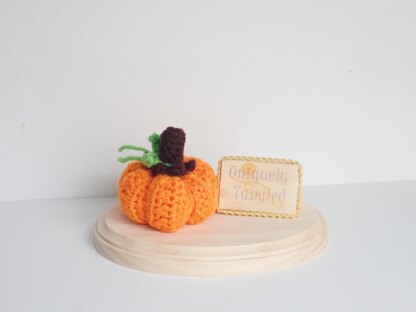Pumpkin is 3” wide and 2½” tall (When using a E hook (3.50mm) and worsted yarn) You can use any size yarn and hook to change the size (I recommend using a hook one size smaller than suggested on the yarn label)