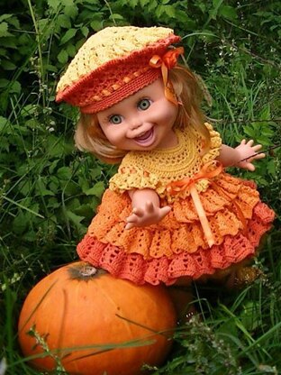This Pattern Crochet is for the Galoob Baby Face dolls outfit, which include the patterns for dress, hat, panties. This can be made to fit an other 12" doll.