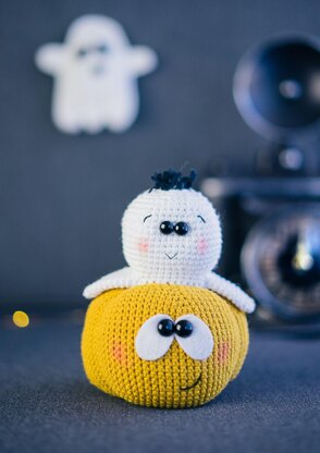 This cute little Pumpkin Ghost will make you smile! This pattern includes detailed instructions and photos illustrating the process. It is written in English and uses standard American terms.