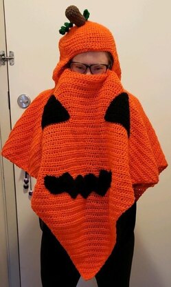TIme for some Halloween Fun with this funky pumpkin poncho. You can become a pumpkin with this amazing hood with a stump and leaf. Not to mention the pumpkin face!