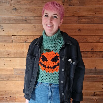 As versatile and customisable as the original Granny Square Pop-Over, this one has the added charm of a creepy cutie to keep you company through the dark nights.