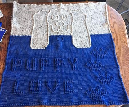 Suggested yarn with color chart and amounts used included with pattern.