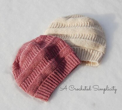 In keeping with my latest "knit-look" designs, I've designed the "Purl Illusions" Slouch that contains alternating sections of "faux purls" and "knit-look ribbing".