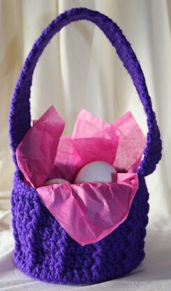 Make this little purple basket with textured sides to hold a small clutch of Easter eggs or candy. It's just the right size to hang from a door knob or grace a window sill. Made in one piece with a small seam where the handle attaches on one side.