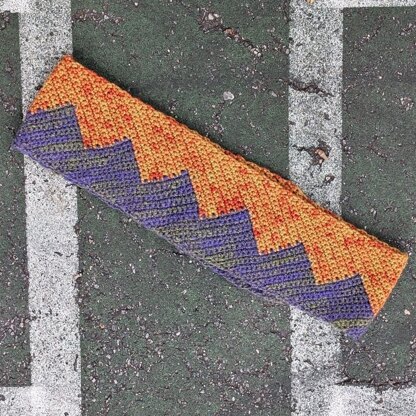 This bulky weight cowl can be made with two different colors for the mountain-like effect, or with a single color for a subtler look.