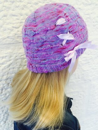 Match any ribbon you like, one day pink the next day maybe blue? It’s up to you or the person who wants to wear this light hat. The hat comes in 2 different sizes, however the bigger size can be also worn by adults if you add some lenght. The pattern is easy but not boring so keeps your attention to the knitting while giving you some simple knit rows in between.