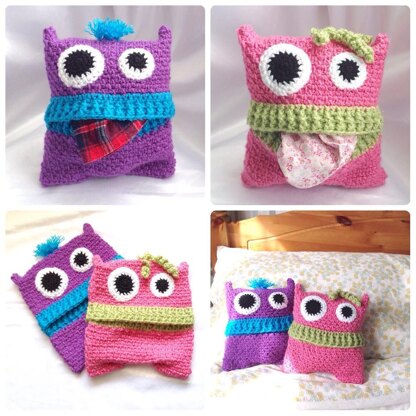 Create fun monsters that love to gobble up pyjamas for safe keeping until bedtime. For this pattern, you will be working with UK Chunky (US Bulky) yarn and a 6mm hook. Using this thicker yarn will make your monster nice and squidgy so it doubles up as a plushy when stuffed with pyjamas too. You can use 2 strands of DK held together for the same gauge. The approximate finished size will be 9" square. You can easily adjust this size if you wish, instructions will be given to do so.