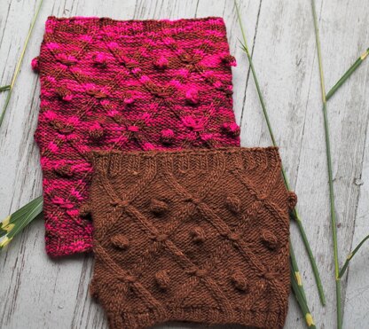 Fit for a queen, quatrefoil was a popular Gothic and Renaissance decorative shape that featured a four-sided symmetrical frame. My seamless cowl has faux cables created with increases and decreases. A royally decorative bobble decorates the center of each four-sided frame.