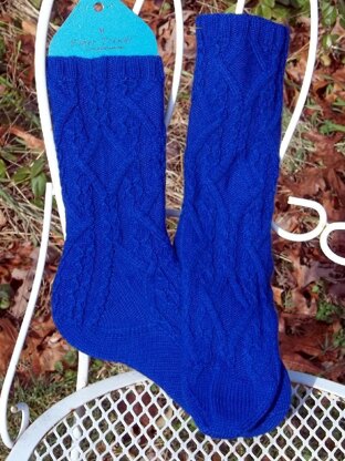 This top-down sock pattern uses slipped stitches and cables to depict Hera’s role as Queen of the heavens. For this pattern, I recommend using solid or low contrast yarn to showcase the intricate stitch work, but any color way of your choice will work. Cable work can also limit the stretchiness of the finished sock, so either use a 4 ply sock yarn that is springy, use larger needles, or size up. Directions are provided for 4 adult women’s sock sizes, extra small, small, medium, and large, equi
