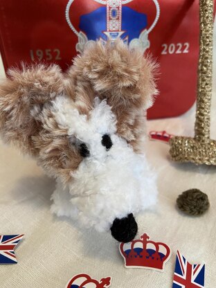 Adorable fluffy Queen’s Corgis to accompany Her Majesty for the Jubilee celebrations, knitted quickly and simply on a pair of straight knitting needles in fur effect alpine yarn. Knit one for company or a litter for some canine chaos on your party table. Complete with gold Royal poop scoop, and of course, a little poop pressie for ER!