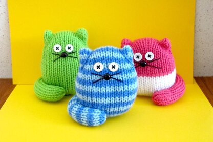 With the success of my Quick Knit Owl pattern I thought I would make them some playmates. These cute cats are quick and very easy to make, just like the owls. The good thing is, they stand on their own, supported by their tails.