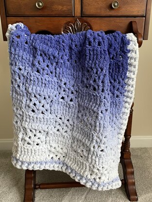 Looking for a beautiful baby gift that's quick & easy? This blanket crochets up in 4 hours or less for most crocheters! The colors, texture of the yarn and the holes will be very stimulating for the baby as well as keeping them warm.