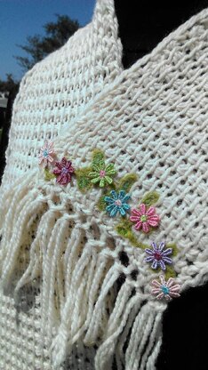 And don't worry about crocheting or knitting flowers! Just purchase some trim at your favorite sewing and fabric store, cut it into individual flowers, tack them on and you've got a scarf!