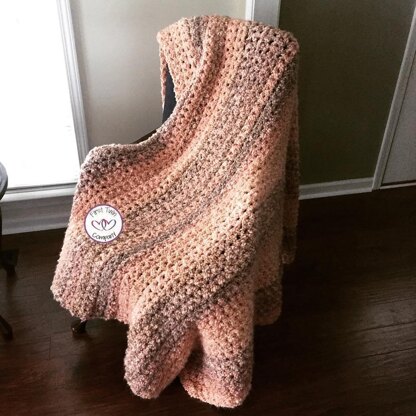 This pattern is for the fuzzy and bulky blanket pictured above. Finished blanket will vary on your preference for size. The pictured blanket is 5.5 feet long and about 5 feet wide.