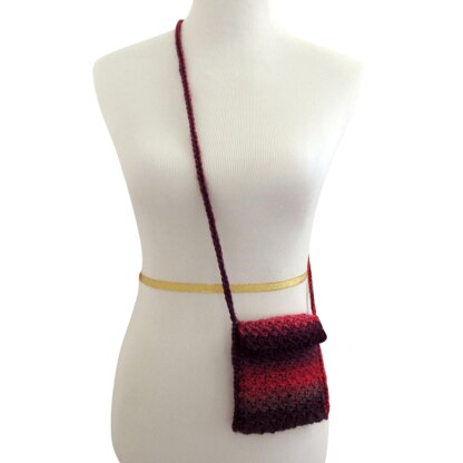 This Quick Little Bag is just that, and it came about due to a lack of pockets! I was at a trade show and realized most of my outfits for the long weekend had no pockets. I had a big shoulder bag, but my phone and business cards kept getting lost in it. So I grabbed some Red Heart Unforgettable and a crochet hook and whipped up this bag. Problem solved! I made a new sample for the pattern that is a little thinner, longer, and has a flap. Enjoy!