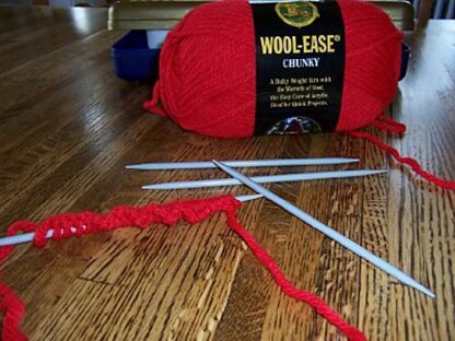 If you'd like to try socks, I have a free downloadable pattern for socks made on big needles (#8 dpns) with LB Wool-ease Chunky. I've found knitters have an easier time trying big socks, with big yarn, on big needles -- fewer sts and easier to see.