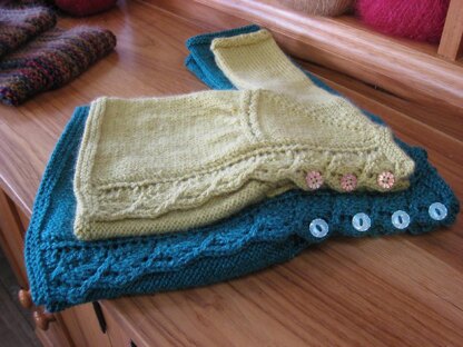 Notions: 5 stitch markers (4 of one kind, and 1 of another), 3 (4) buttons and/or 1 yard of ribbon