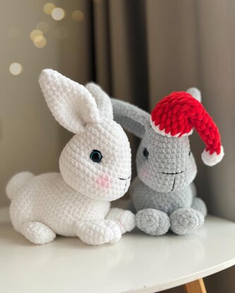 Materials and Tools: • Just over one skein of plush yarn (for example, Yarnart Dolce, Himalaya Dolphin Baby, Bernat Baby Velvet yarn-100g/120m – 120 mt/131 yards per skein). • A little bit of red and white plush yarn for the hat • 4mm crochet hook • 16mm safety eyes • Little bit of black cotton yarn for decoration of the muzzle. I used Alize Cotton Gold #60 • soft stuffing • thin long needle and needle with a large eyelet • marker • yarn cutter or sharp scissors • 2 knitting needles to secure the head