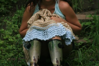 Yarn Knit Picks Billow, 100% Pima Cotton, 120 y / 110 m per hank, Yarn A: Willow (5 hanks), Yarn B: Natural (5 hanks), Yarn C: Clarity (1 hank) Needles 6 mm (US 10) circulars Gauge 13 sts and 20 rows = 4” / 10 cm in garter Sizes one size; 46" / 117 cm wide x 49" / 124 cm tall