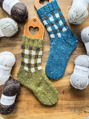 The socks are designed BOTH Cuff-Down and Toe-up and are knit double-stranded. This creates a fun DK weight gauge. Don’t want to knit double-stranded? No worries you can substitute for 1 strand of DK weight yarn.