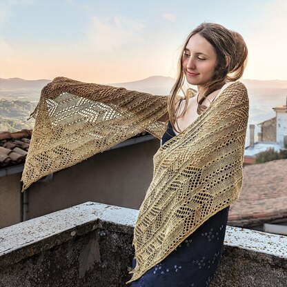 Radianza (Radiance) is a Summer lacy stole worked in a variation of a Japanese lace stitch, in a rich golden color. It’s a lightweight piece perfect foradding a touch of elegance to any outfit.