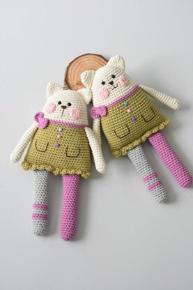 Rag doll cat is a rough and unpolished looking, Scandinavian style crochet toy. It brights up the kids room as a decoration, but also makes a nice toy to cuddle. Although you need different stitches for making, the overall skill level is intermediate.