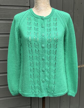 This classic raglan cardigan is primarily worked in stocking stitch, with a delicate eyelet panel on each front adding a touch of elegance and visual interest. The borders are finished in a neat single rib, providing a clean and timeless edge. Stylish yet versatile, this piece is sure to become a staple in any wardrobe. Worked bottom up and with full written instructions.