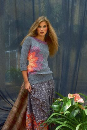 Raglan Sweater with Flower in Schachenmayr Sun City - 6636 - Downloadable PDF