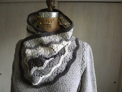 Pattern is written for fingering weight yarn and includes instructions for both scarf in two sizes and cowl in three sizes.