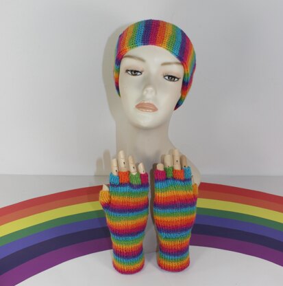 Rainbow 4ply Short Finger Gloves & Headband Circular