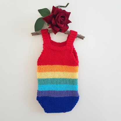 Knit a Striped Rainbow Baby Romper and Baby Bonnet for that special little baby.